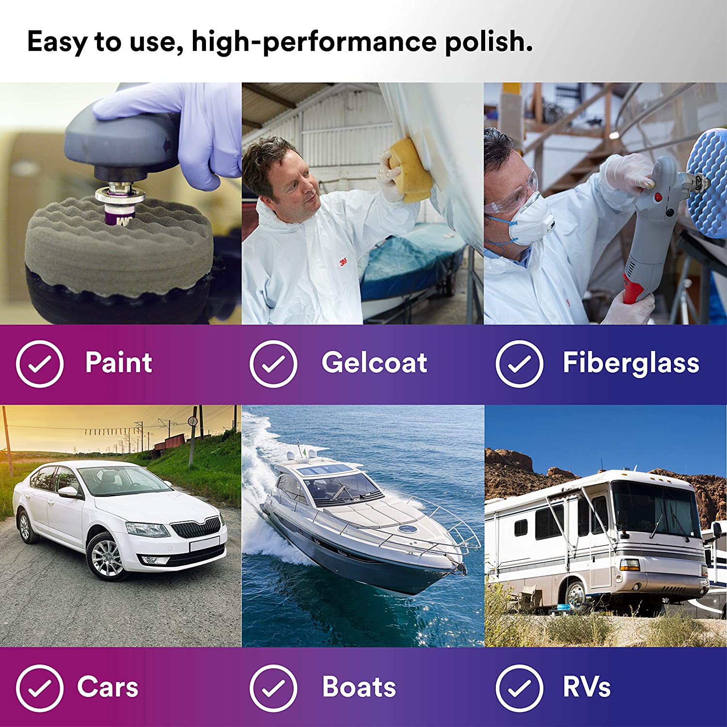 Our 3M™ Perfect-It™ Machine Polish is our highest-performing polish for collision repair. This machine polish is 3M’s fastest for removing compound swirl marks and leaves the finest finish. Our high efficiency formula means you’ll use the least amount of product, saving you both time and money.