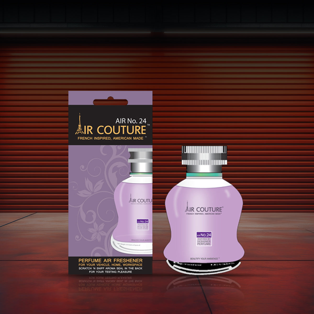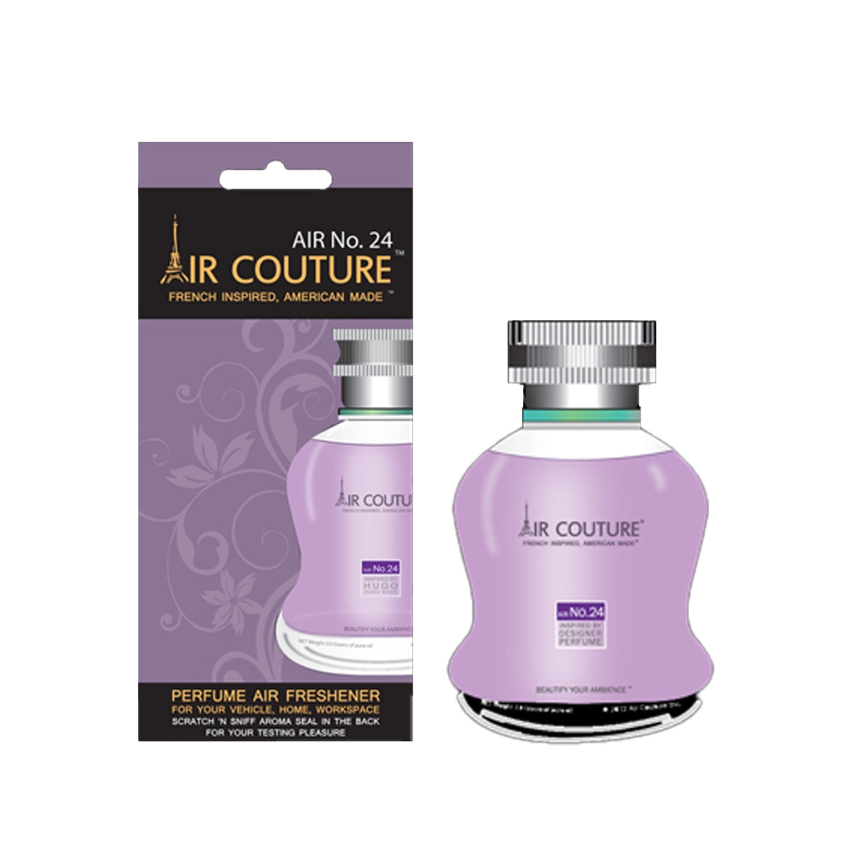 Welcomed by both men and women, Air Couture’s air fresheners are made from the finest oils and exclusively designed to suit your vehicle, home, and workspace. Air Couture Fresheners have both visual and aromatic appeal, freshening your bedroom, bathroom, closet, or office cubical with an elegant and attractive design that can be hung from any area of your choice. These unique scents will help neutralize cigarette, leather and other unpleasant odors and fill the air with the aroma of couture fragrances. This is not your normal, run of the mill, green tree air freshener, these are perfume based designer fragrances that provide a sophisticated and refined scent, unrivaled by any other paper freshener. Air Couture is American made, so shop with confidence knowing that you are supporting a domestic product that is rooted in quality.